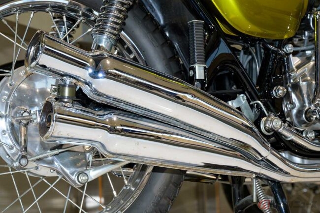 「CB500フォア」が発売された1971年は、新しい排気音量規制が施行されました。それまではトラックでも自動二輪車でも全て85dbだったのものが、それぞれ測定方法や規制数値が分けられました。現在の規制からすればそれほど厳しい数値ではありませんが、バイクメーカーの排気音量への開発意識が変わったことは間違いないでしょう。