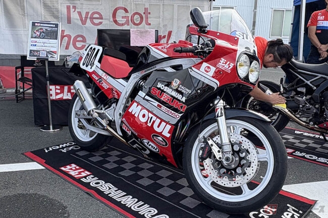 「GSX-R」シリーズの元祖といえる「GSX-R(400)」(1984年)やグローバルモデルの第一弾「GSX-R750」(1985年)などの歴代モデルやレースで使用されてきた車両も出展されました。