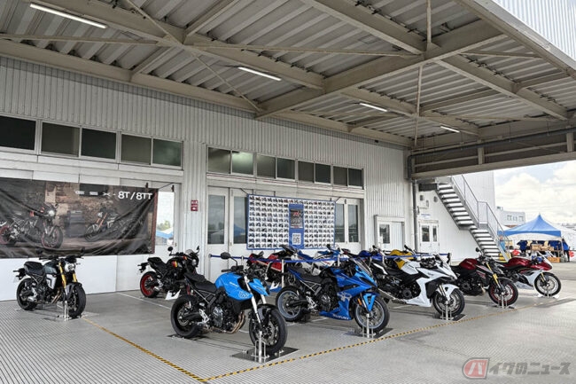 先程も言いましたように、GSX-R 40周年記念ということで、鈴鹿8耐でも紹介させていただいたGSX-R1000の40周年モデルを始め、GSXS-1000、GSX-S1000GT、そしてGSX-8T、GSX-8TTと言った、まだ日本で披露されていないモデル、新色を展示させていただいております。ぜひ、楽しんでいていただければいいなと思います。
