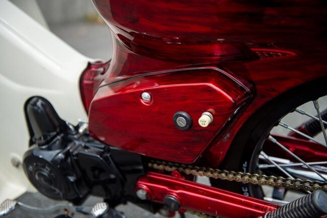 簡単に説明すれば、その内容は純正のヘッドライト兼ハンドル回りを一掃しバーハンドル化し、リアフェンダーをプレスラインに沿って切り落とす手法で、手軽にベースシルエットが出来るので器用な方ならば1日もあれば完成するという、シンプルかつ王道の鉄カブスタイルとなっています。