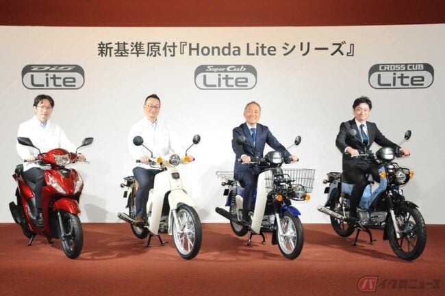 新基準では、最高出力4kW以下に抑えた排気量125cc以下のエンジンを搭載すること。ホンダは、すでに国内市場に投入されているカブ系と実用スクーターの自動二輪モデルを基本にして、モデル名に「Lite」を付けることで、原付免許で乗れることをアピールします。