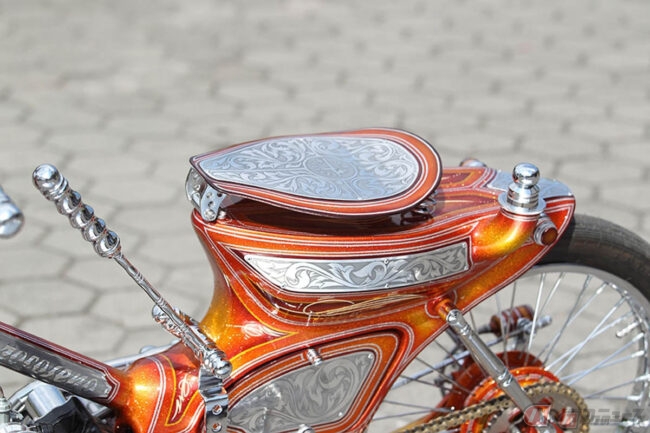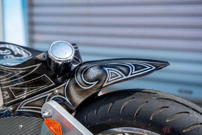 ハーレーをベースとしたチョッパーをはじめ、派手なスタイリングのカスタムで人気のペイントです。ラメの大きさによって、仕上がりの印象が異なるのも面白いポイントといえるでしょう。