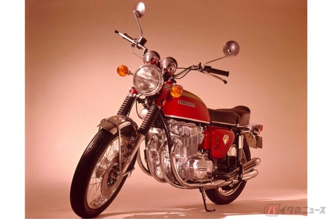 ホンダ「CB750FOUR」は、1969年に登場した量産市販車としては世界初となる排気量750ccの直列4気筒エンジンを搭載するスポーツモデルです。「ナナハン」という呼び名が生まれ、高出力エンジンとフロントディスクブレーキを備え、当時のバイク市場に大きな衝撃を与えました。
