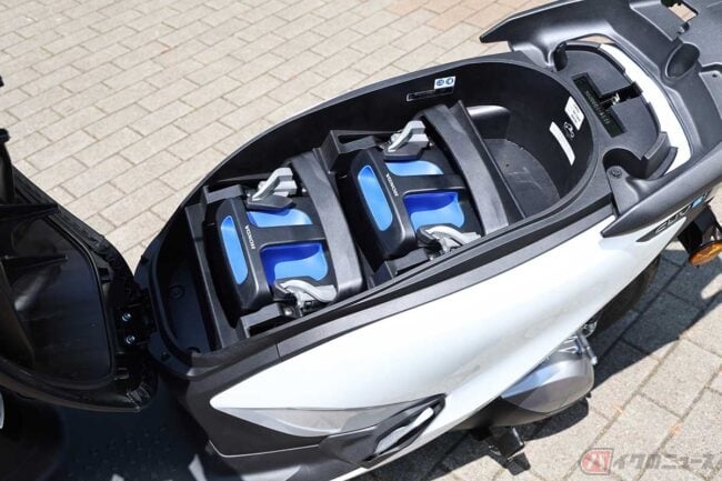 シート下には2つのバッテリーを格納し、重心を低く保つ構造で安定感を確保。フレームや懸架機構も電動車両として最適化され、扱いやすさを重視した設計です。
