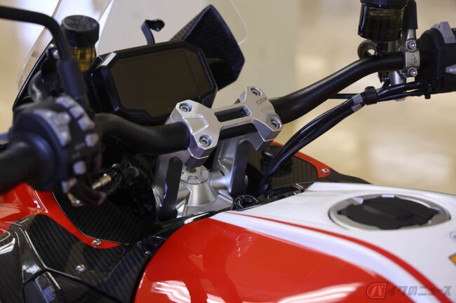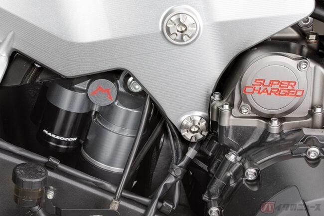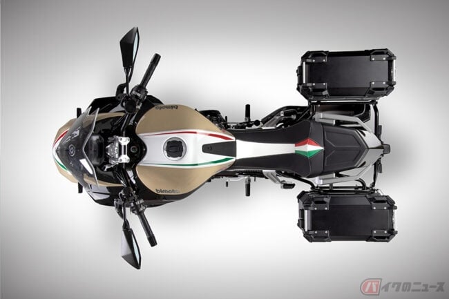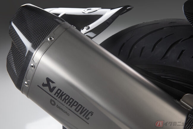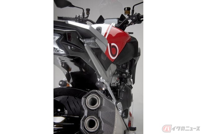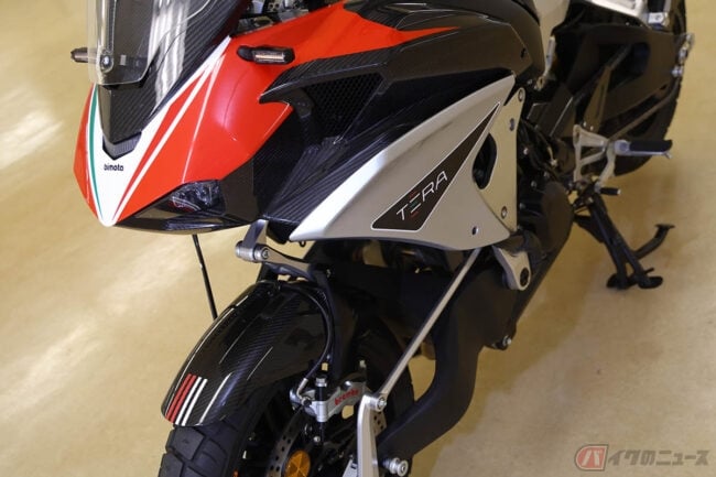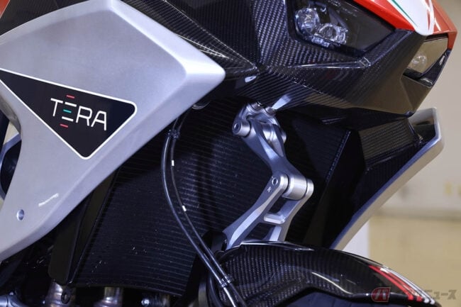 そのほか、Tesi H2 TERAではカワサキと共同開発したクルーズコントロールなどの電子制御、アシスト&スリッパークラッチ、フルカラーTFTスクリーン、LEDライトなどのほか、レーザーエッチングされたロゴ、カーボンエンドキャップ、カーボンヒートシールドを備えたアクラポビッチ製チタンスリップオンマフラーも標準装備されるなど、豪華な仕様とされています。