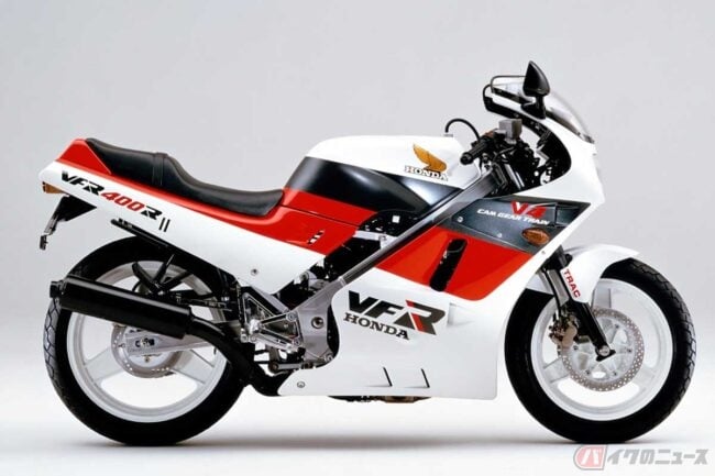 またホンダは、1980年代~90年代はロードレースや、そのベースとなる市販スーパースポーツ車の主力をV型4気筒エンジンとしましたが、1986年発売の「VFR」シリーズ(VFR400R、VFR400Z、VFR750F)はすべてカムギアトレーンです。