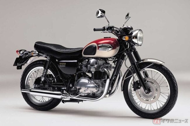 カムギアトレーン方式は、基本的に高回転・高出力を達成するために登場したメカニズムですが、別の観点から採用されたパターンもあります。それは1999年にカワサキが発売した「W650」です。