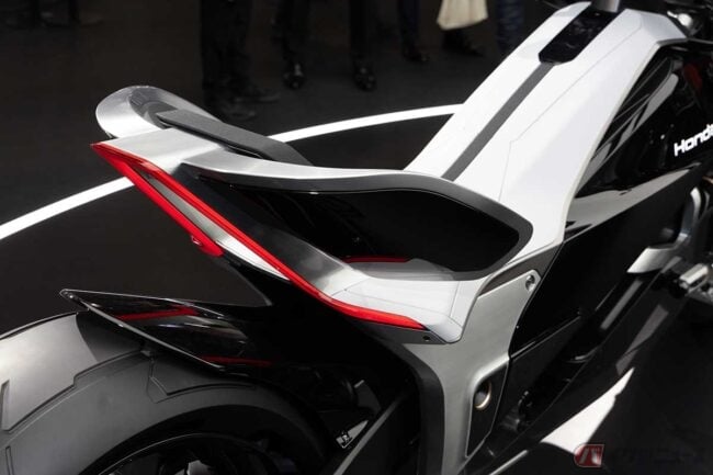 「前後のトルク配分はどう制御するんですか?」と伺うと、「詳しい仕様はまだ言えませんが、Hondaは制御が強みなので、ユーザーが求めるシチュエーションに合わせてコントロールできる仕様だと思っていただければと思います」と、堤さんから頼もしい一言! よりワクワク感を掻き立てられました。