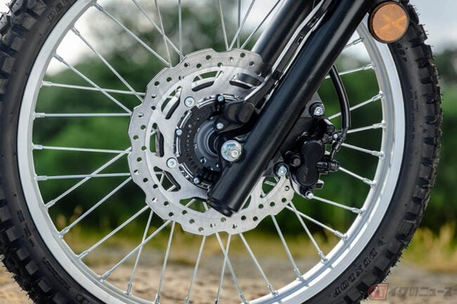 フロント21インチ、リア18インチのワイヤースポークホイール、φ41mmのKYB製正立フロントフォークとリンク式モノクロスリアショックを装備し、舗装路から未舗装路まで、柔軟に対応できる高い走破性を備えています。