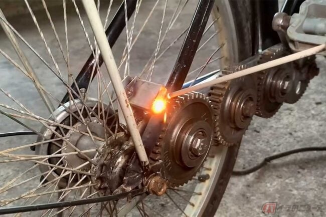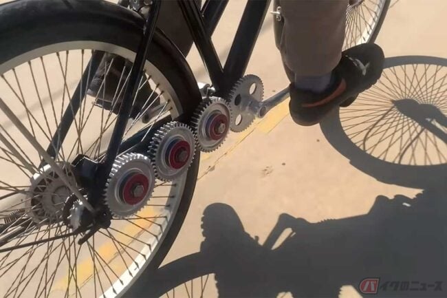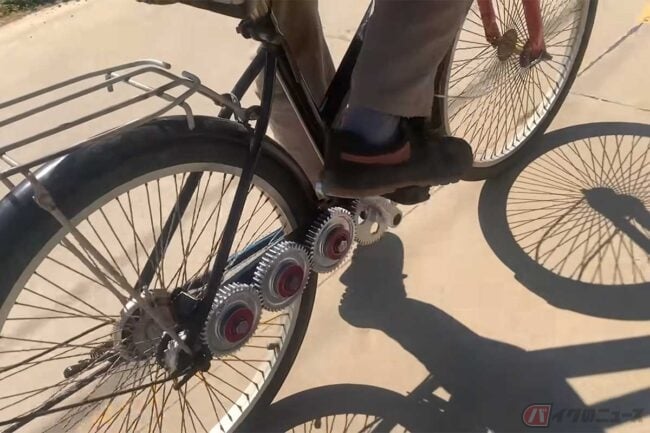 魔改造チャリ爆誕!! チェーンレス「4連歯車」!? 意外なほどスムーズに走るDIY動画に反響