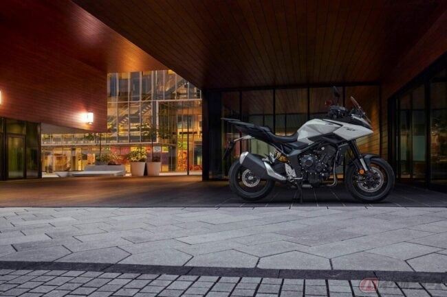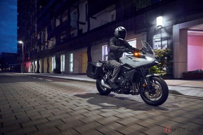 ライディングモードやクイックシフターなど各種電子制御システムを備え、フロントまわりには大型スクリーンとシャープなデュアルLEDヘッドライトが配置され、直線的で力強いラインを基調としたスタイリングが特徴で、市街地や長距離移動での疲労軽減など、スポーツツアラーとしての機能性と先進的なスタイルを両立しています。