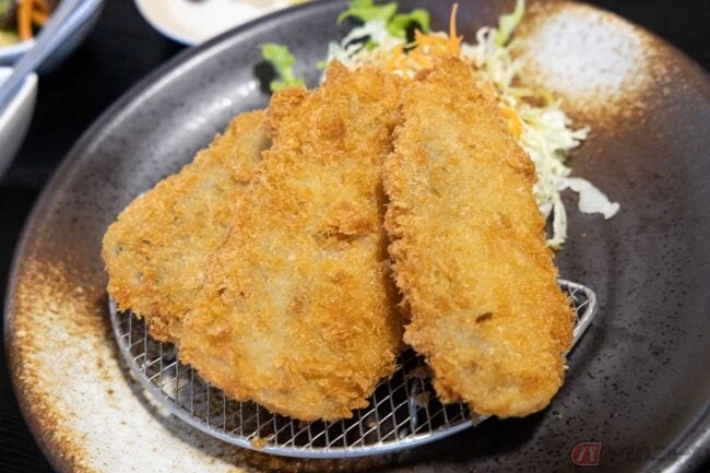 「松浦のアジフライ定食」は、市内の工場で加工されたアジフライで、松浦で言うところの「ワンフローズン」です。久しぶりの松浦で最初のアジフライなので、それもありだなぁと納得する筆者です。