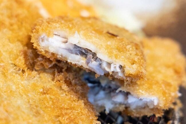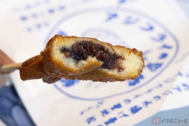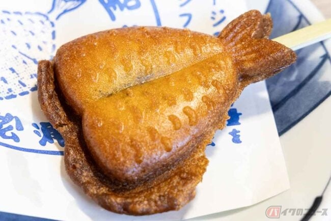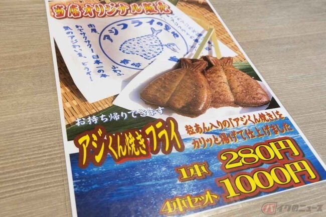 ここで別のメニューに気がつきました。「アジくん焼きフライ」というアジフライの形をした粒あん入りのスイーツです。たい焼きをアジフライの形にしたのかと思いきや、ちゃんとフライにしていて芸が細かい! 食後の口直しにぴったりでした。