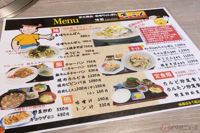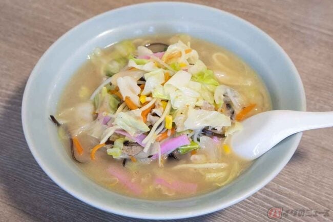 アジフライ以外のメニューでは、長崎県ということで「長崎ちゃんぽん」や「皿うどん」それに「焼肉カルビ丼」や「カルビ炒定食」などの焼肉メニューもあります。Kさんは店の人気メニュー「長崎ちゃんぽん」をオーダーしました。