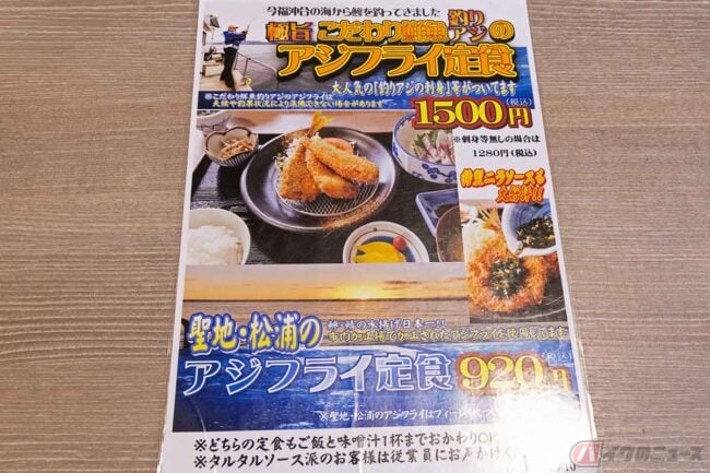 アジと言えばアジフライ! というライダーのために、美味しいアジフライを味わえる店を紹介します。アジフライの聖地、長崎県松浦市の「味楽きらく」を訪れました。