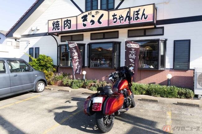 美味しいアジフライを求めて、筆者(増井貴光)がやって来たのはアジフライの聖地、長崎県松浦市です。福岡のカスタムショップ・サードプレースに愛車のハーレー「ロードグライド」をチューニングしてもらうために預け、代車として借りた「ローライダーST」でやってきました。