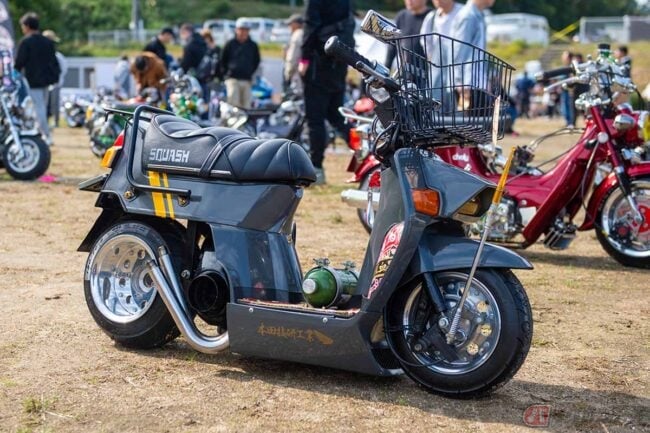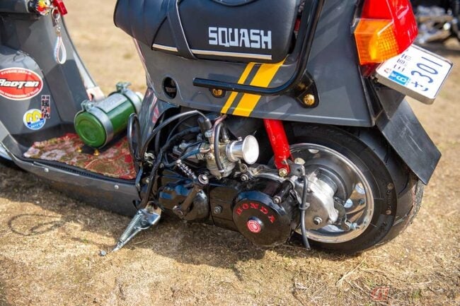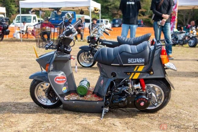 昭和好きに突き刺さる「シャコタン」+「ヤンチャ」な魔改造スクーター!? 車載可能なホンダ「スカッシュ」が大変身!!