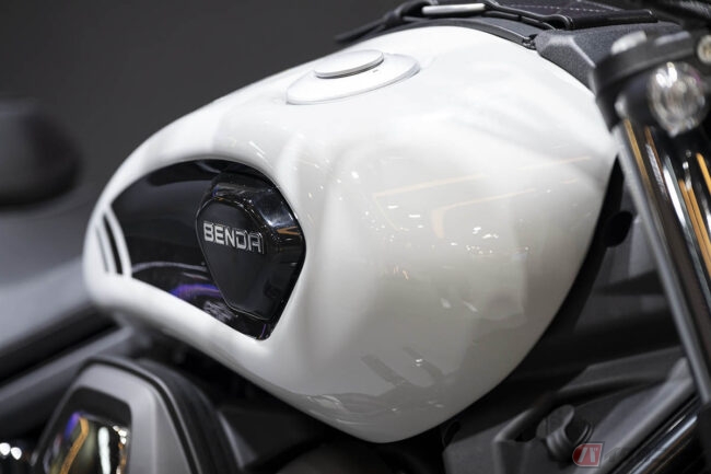 「BENDA V4リッターパワープラットフォーム」と称されるV4エンジンは、強度に優れた鍛造ピストンを採用し、0-100km/hまで3.8秒という俊足を実現。強力なエンジンを搭載しながらも、車両重量は242kg(満タン時)と軽量化に成功しています。