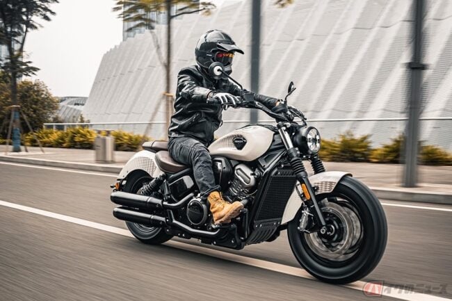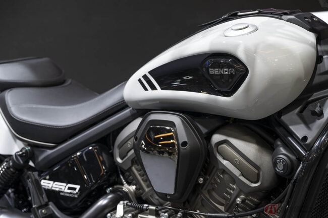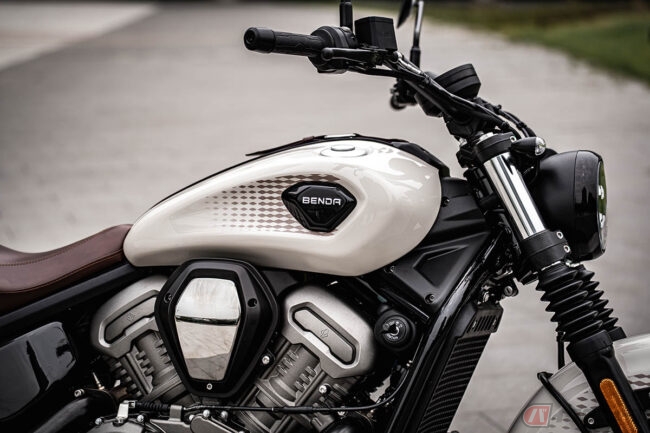 自社開発の“ニア・リッターV4エンジン”搭載!! 中国のバイクブランド「BENDA」が新型クルーザー「Dark Flag 950」公開 シート高690mmで足つき性も配慮