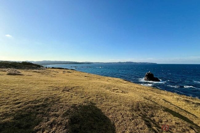 さらに東側の「左京鼻」では、細く伸びる岬の先端から地球の丸さを感じるほどの大パノラマが広がり、潮風を浴びながら深呼吸したくなる開放感が待っています。