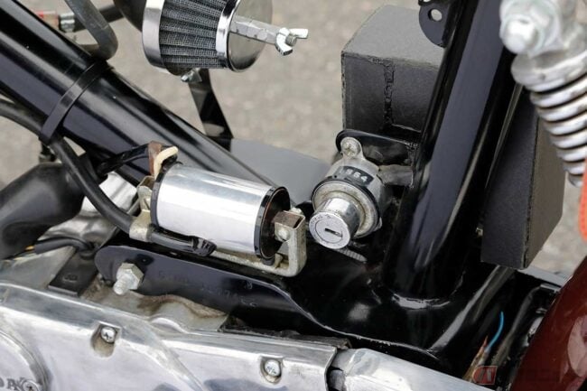 オリジナルデザインの完成車を無理に改造するのではなく、余っていた部品やスペア部品を組み合わせることで完成させたのが、このカスタムマシンになります。
