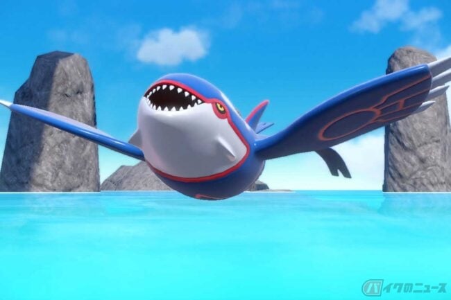 このカラーリングは伝説のポケモン「カイオーガ」を彷彿とさせます。大雨を降らせて海を広げたと言われている「カイオーガ」は、深い青の体色と赤いラインが特徴です。