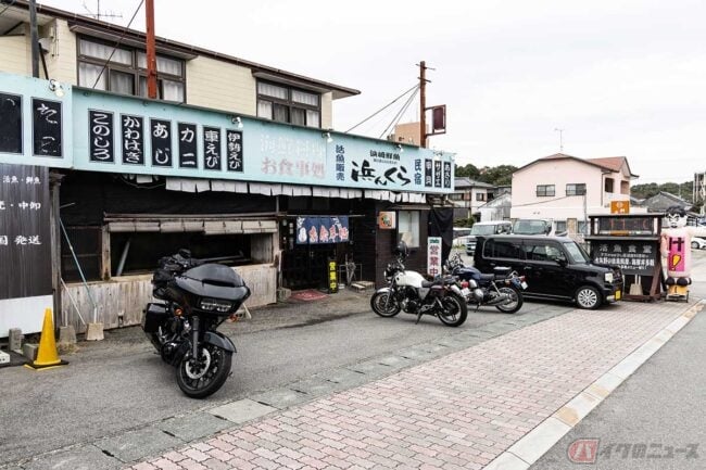 アジと言えばアジフライ! というライダーのために、美味しいアジフライを味わえる店を紹介します。熊本県の天草を走って「浜崎鮮魚 浜んくら」を訪れました。
