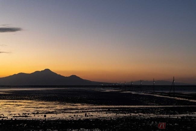 汐の高さと太陽の位置が期待していたのと違いましたが、それでも有明海と雲仙を望む、最高に綺麗な夕景を撮ることができました。