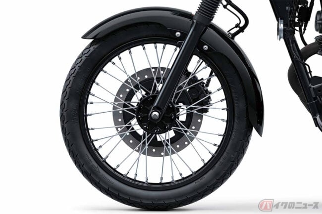 「L」グレードでは、前後17インチスポークホイール、「STREET」グレードでは17インチキャストホイールを採用し、レトロなパターンのタイヤと併せてフロントABSが搭載されています。