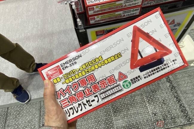 高速道路上で、故障や事故などにより路肩へ緊急停車する場面では、後続車へ危険を知らせる「三角表示板」が重要な役割を担います。クルマではトランクスペースなどに備えている場合が多いようですが、バイクではどうでしょうか。
