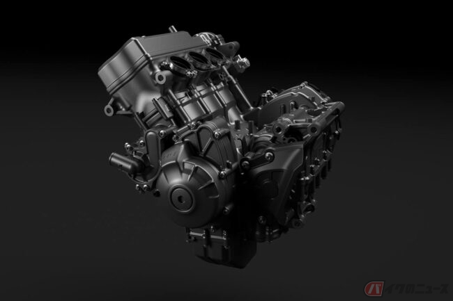 エンジンは、“クロスプレーン・コンセプト”に基づく排気量888ccの水冷4ストロークDOHC・直列3気筒エンジンを軽量なアルミフレームに搭載しています。