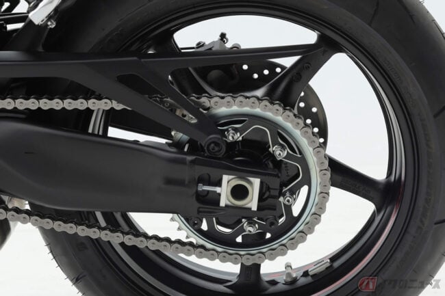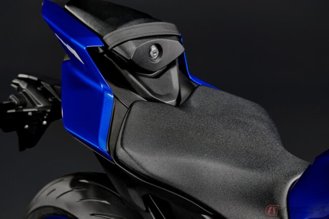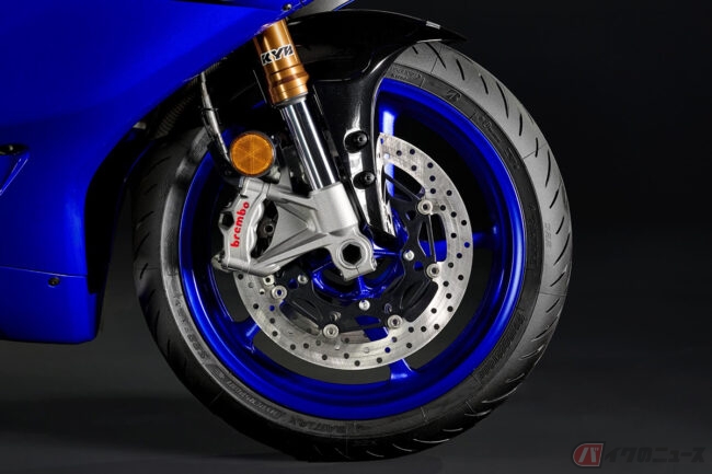 シャーシは、ヤマハの歴代スーパースポーツ(YZF-R1、YZF-R6)で最軽量となる新型アルミダイキャストフレーム(9.7kg)に、緻密な減衰コントロールが可能な前後KYB製新型サスペンションを組み合わせて構成されています。これにより、サーキットで求められる高い性能と、スキルやステージを選ばない扱いやすさを兼ね備えた懐の深いモデルに仕上げられました。