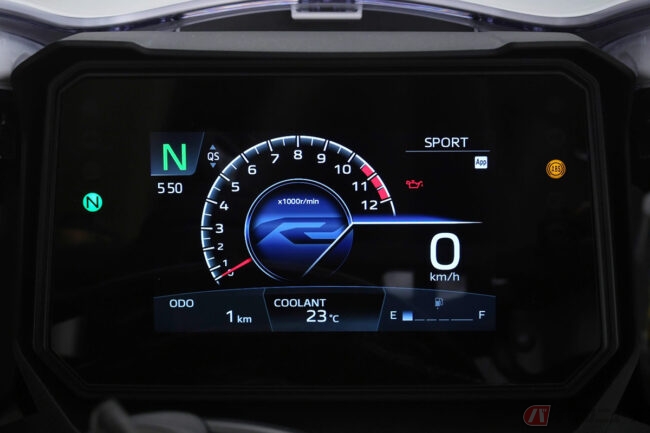 装備面では、エアロダイナミクス効果の高いウイングレットを採用するほか、良好な足つき性と快適性を両立したスポーティなライディングポジションを実現しています。