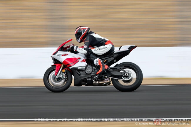 同時に発表された70th Anniversary Editionは、1955年の創立以来、レースと共に歩んできたヤマハ発動機の歴史を表現する特別なカラーリングが施された限定モデルです。デザインは、1964年にヤマハ初の250cc世界チャンピオンマシンとなった「RD56」がまとっていた“白地に赤のライン”のカウルのイメージに着想を得たグラフィックが採用されています。