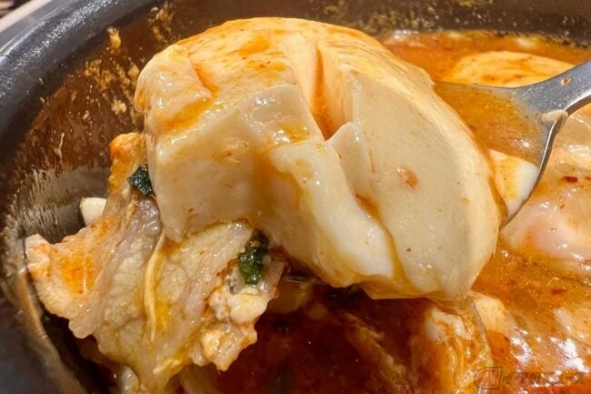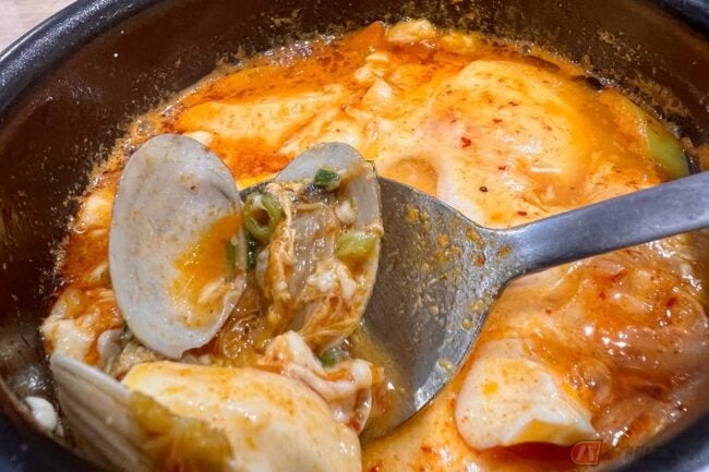 もちろん海鮮チゲだけに、アサリをはじめ海の幸がたっぷり入っているのも嬉しいポイントでした。魚介から出る旨みがスープ全体に溶け出し、辛さの中にも深いコクが感じられます。海鮮好きな人にも満足度の高い内容と言えるでしょう。