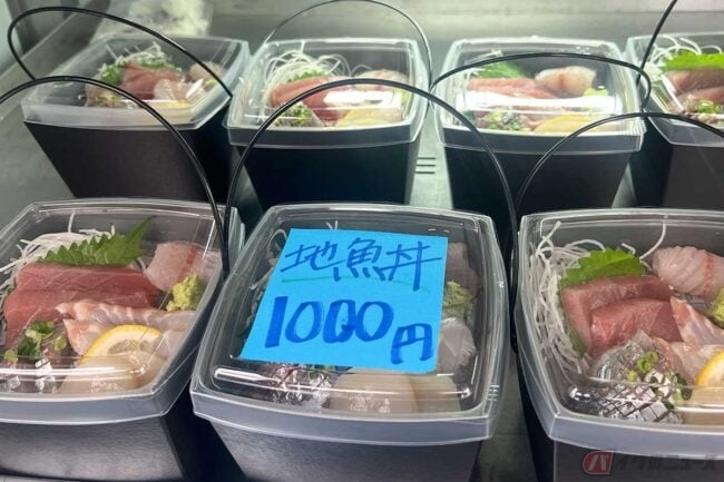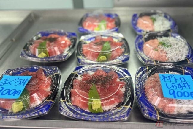 移動販売をしている海鮮丼やマグロ丼、キッチンカーのアジフライやマグロフライなど、全ての商品を漁港での仕入れから製造販売まで、土屋さんとスタッフだけで行なっているそうです。「水産女子プロジェクト」の名は伊達ではないです。