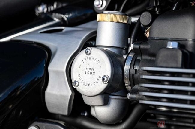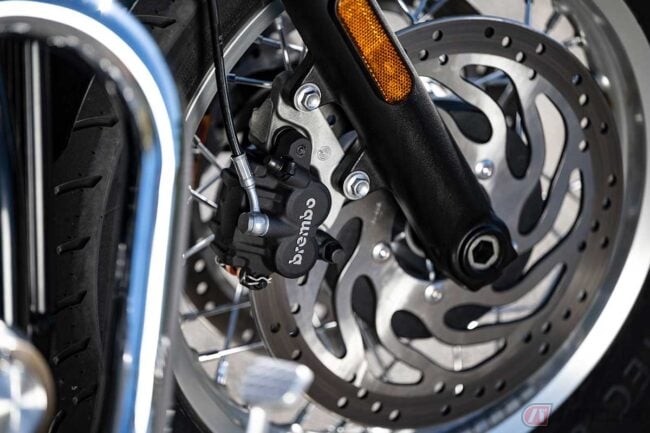 2026年モデルのアップデートは、「ボンネビル・ボバー」と共通の部分が多く見られます。燃料タンク容量は12Lから14Lに拡大し、航続距離を確保。ライディングモードは「レイン」と「ロード」から選べ、IMU対応のコーナリングABSやトラクションコントロールを装備。さらにスポークホイールのリムを軽量なアルミ製とすることで、ハンドリングに軽快感を与えています。
