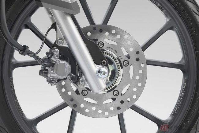 ブレーキシステムは、フロントにディスクブレーキを採用し、高い制動力を追求しています。さらに、フロントには1チャンネルABS(アンチロック・ブレーキ・システム)を装備し、制動時の安心感を高めています。
