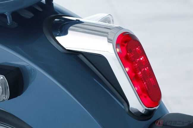 灯火類にはLEDが採用されており、丸目のヘッドライトはスタイリッシュな白色光で視認性と被視認性に貢献。また、スマートな縦型のテールランプと初代モデルを彷彿とさせる形状のウインカーにもLEDを採用し、リアビューをシャープな印象に引き締めています。