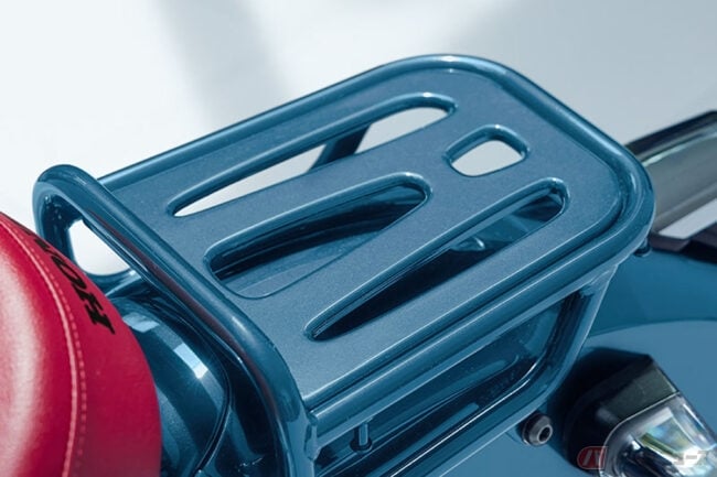 このほか、荷物の積載に便利なリアキャリアや、二人乗りを可能にするピリオンステップも標準装備されています。より快適な乗り心地のためのピリオンシートは別売りアクセサリーとして用意されています。