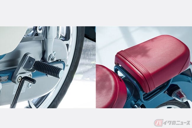 シートは厚みのあるクッションを採用し、快適な座り心地を実現。また、シートの前側をスリムな形状とすることで、足着きの良さにも配慮されています。シート下には車名ロゴをあしらった立体エンブレムがレイアウトされています。