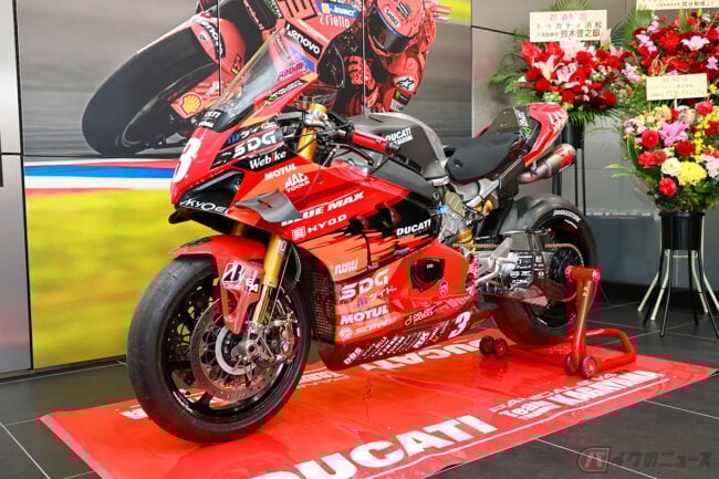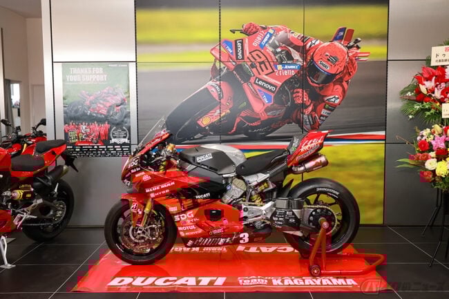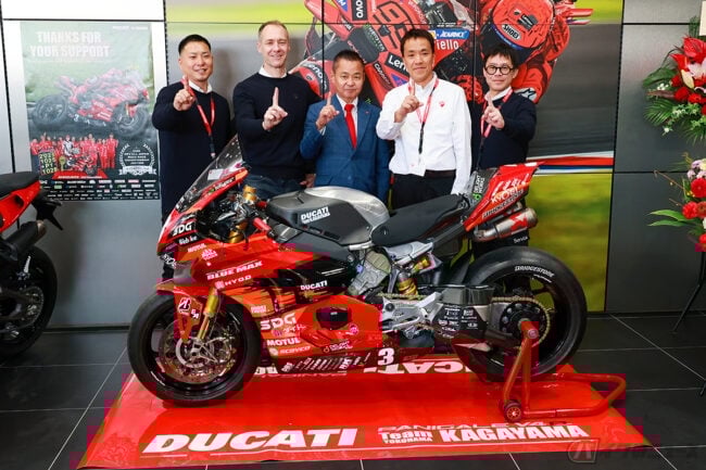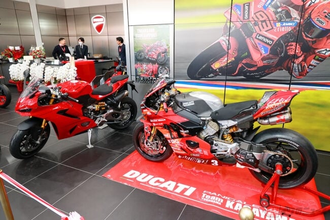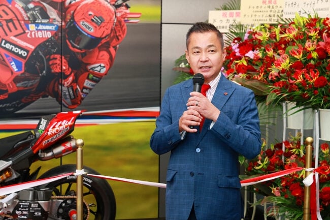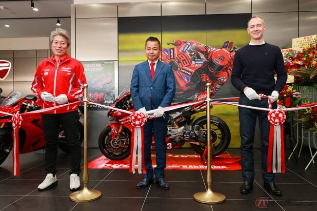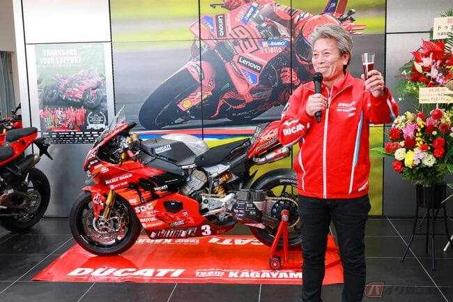 また、テープカットには「Team KAGAYAMA」を率いる加賀山就臣監督も参加し、「モータースポーツを通じて、ドゥカティの魅力をさらに広げていきたい」と、新店舗のスタートを祝いました。