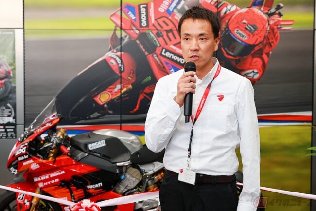 P-UP Worldの中込正典社長は、ロードレース世界選手権「MotoGP」におけるドゥカティの活躍に魅了され、事業参入を決意したと説明。「お客さまと従業員のために結果を出し、地域ナンバーワン、さらには日本一を目指していきます」と意欲を語りました。