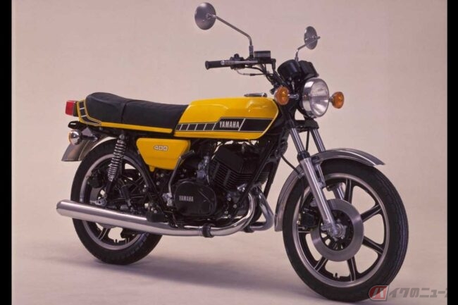 おそらく公道市販モデルで、最初にUSインターカラーを採用したのは1977年に発売された「RD400-II」でしょう。ヤマハの市販2ストローク車で最大排気量だった「RD350」の排気量をさらに拡大した「RD400」(1976年)に、テールカウルを追加しています。