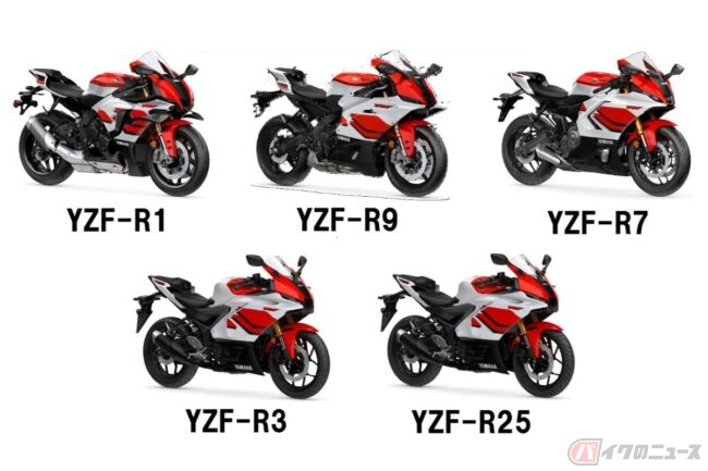 時間は飛びますが、2026年はヤマハ発動機創立70周年になります。そこでヤマハは、スーパースポーツモデルの「YZF-R」シリーズ5機種の2026年モデルに、記念カラーを用意しました。