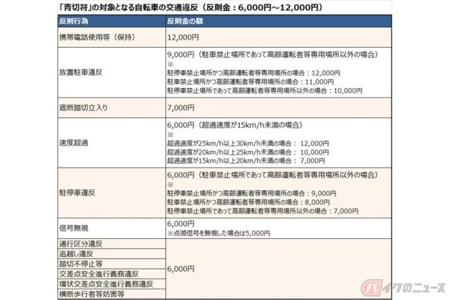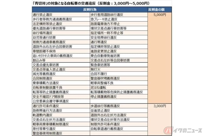 ひとことに「青切符」と言っても、多すぎる違反行為や年齢のこと、違反の危険度など、正しく理解する必要がありそうです。