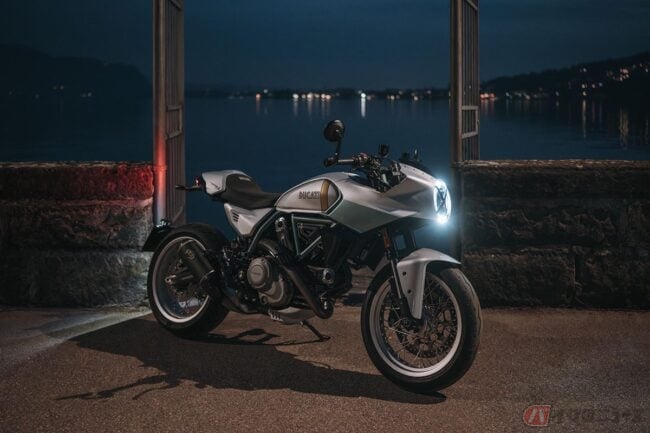 そのデザインは、750 Super Sport Desmoを現代的に再解釈したもので、無駄を徹底的に削ぎ落としたエレガントな美学を持つ、流麗かつスレンダーなフォルムはこのバイクの軽快さを視覚的に表現しています。