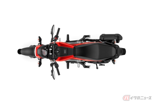フレーム、ホイール、エンジンなどはブラックで統一され、ホンダのオフロードモデル「CRF」ファミリーを彷彿とさせる大胆なカラーリングのサイドパネルがアクセントとなっています。