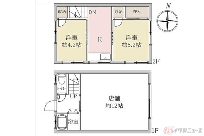 間取り:2SK(洋室5.2帖(2階)/洋室4.2帖(2階)/キッチン(2階)/その他12帖(1階))