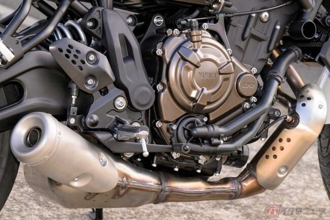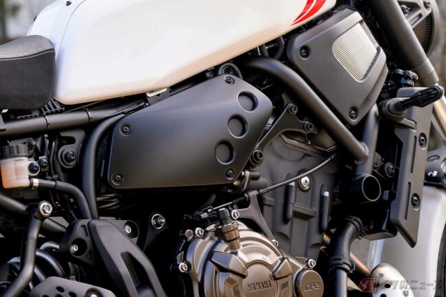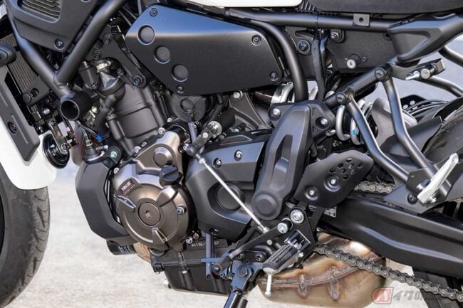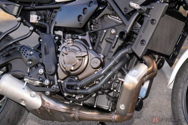 「XSR700」には、ヤマハが「CP2」(クロスプレーン・コンセプトの2気筒)と呼ぶ、排気量688ccの水冷並列2気筒エンジンが搭載されている。